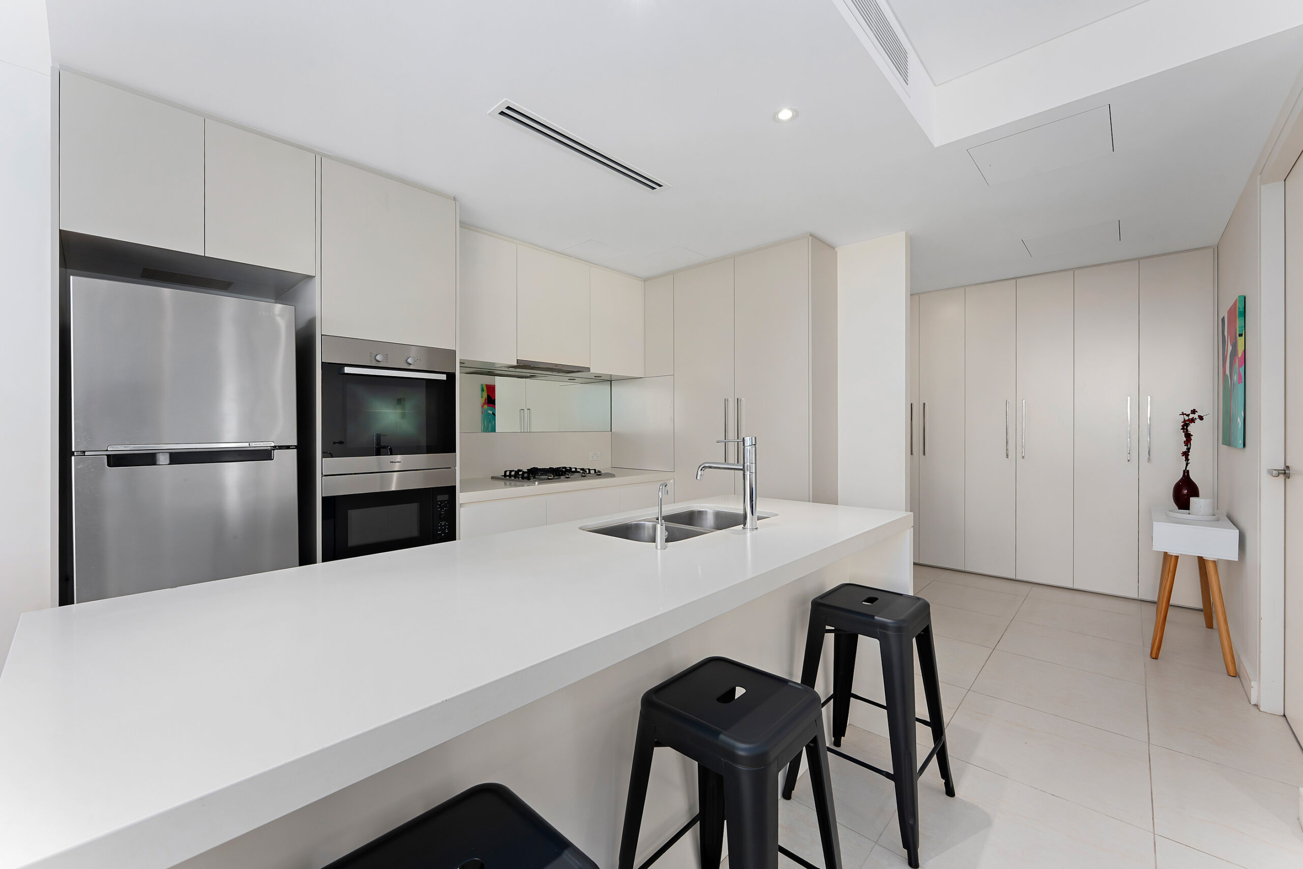 - Stunning CaesarStone island kitchen boasts Miele appliances