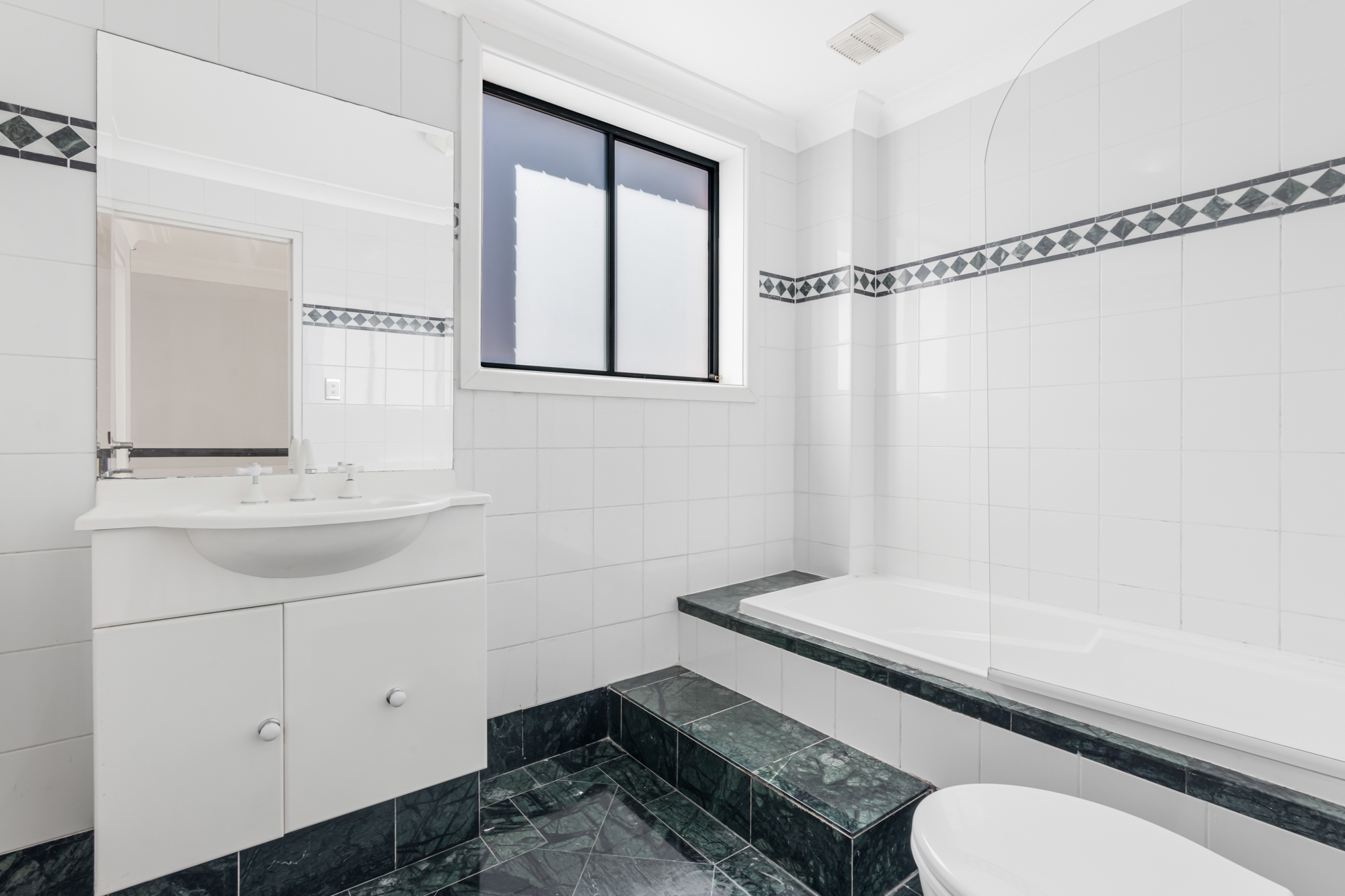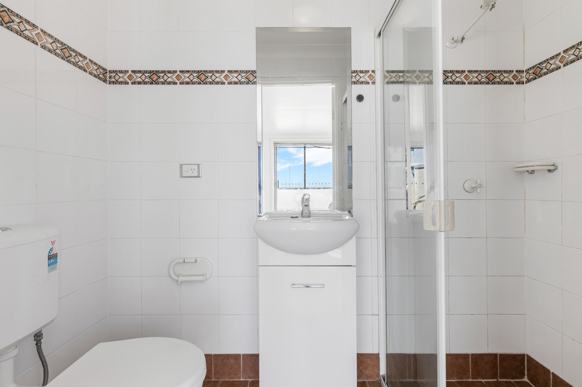 - Generously sized bathroom with shower over bath
