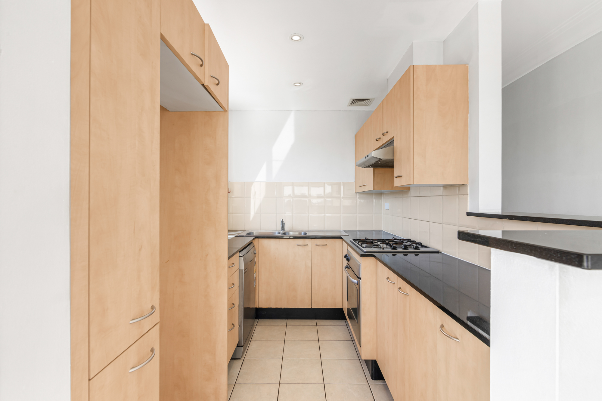 - Modern kitchen with ample cupboard space & gas cooking